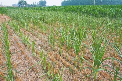 由于干旱,许昌农田里的玉米苗长得像蒜苗。(杜文育 摄影)