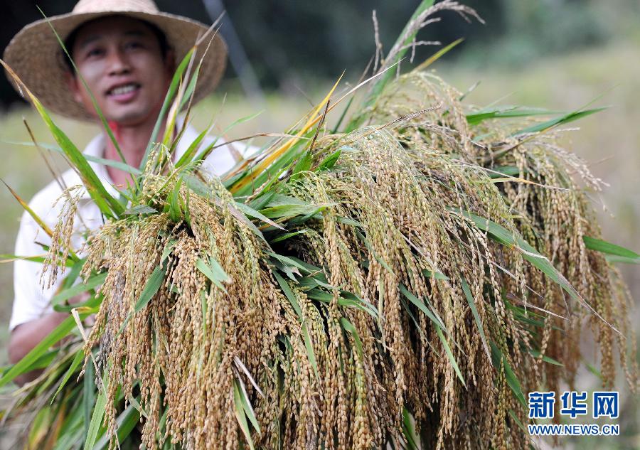 新华社照片,琼中(海南),2014年12月4日 我国粮食总产量实现“十一连增” 海南琼中县农民在抢收山兰稻。(蒙钟德 摄)