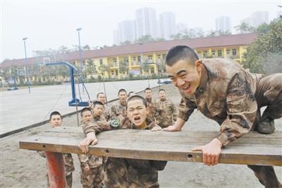 12月12日,新兵胡开星(左)与班长杨万龙(右)比拼400米障碍,其“初生牛犊不畏虎”的劲头,大大激发了新战士的训练热情。(李弛 解放军报)