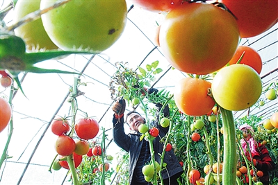 元旦临近,甘肃省敦煌市的农民加强设施大棚蔬菜的田间管理,丰富节日市场的“菜篮子”和旅游市场的“餐桌子”。(新华社发 张晓亮摄 科技日报)