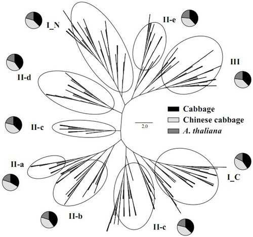 图1. 甘蓝、白菜和拟南芥中的WRKY结构域的进化分析