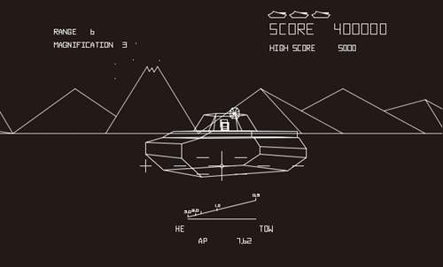 1981年,Atari(雅达利)推出了一款名为《Battlezone》的街机游戏,玩家在类似坦克驾驶舱风格的街机框体上操纵一辆坦克,游戏目标则是击毁敌方坦克、不明飞行物和导弹等。
