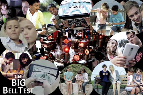 ▲为了验证量子缠绕的存在,科学家设计了一款Big Bell Test (大贝尔实验) 的游戏。2016年11月30日, 全球 超过10万的志愿 者玩家在12小时 内持续产生每秒逾1000比特的数据 流,这些随机数被 用于13个不同的贝尔实验上,2018年5月10日, 实验结果以论文的形式发表在学术期刊《自然》上