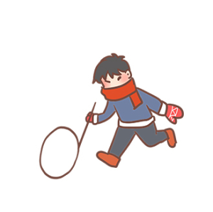 滚铁环是一项跑步加技巧的健身运动,玩具十分简单:一个木桶上用过的铁箍,一根下端弯成U型的粗铁丝,顶端弯个手柄,用它来推动铁环向前和控制方向。有的在铁环上另加几个铁丝小环,哗啦啦的滚动声更增添了几分娱乐气氛。春节期间,常会看到大街小巷、打谷场上孩子们跑得满头大汗快乐的身影。