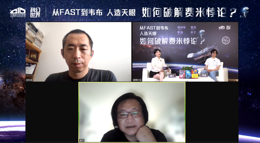 之后的圆桌环节是主持人与三位嘉宾的对谈,大家分别从“现实与科幻中的人造天眼”、“人造天眼如何破解费米悖论”、“大众触手可及的人造天眼” 等内容就本期主题进行了热烈的探讨。