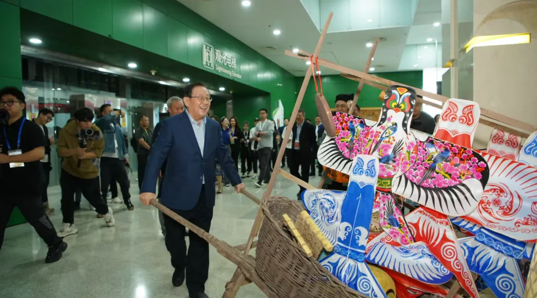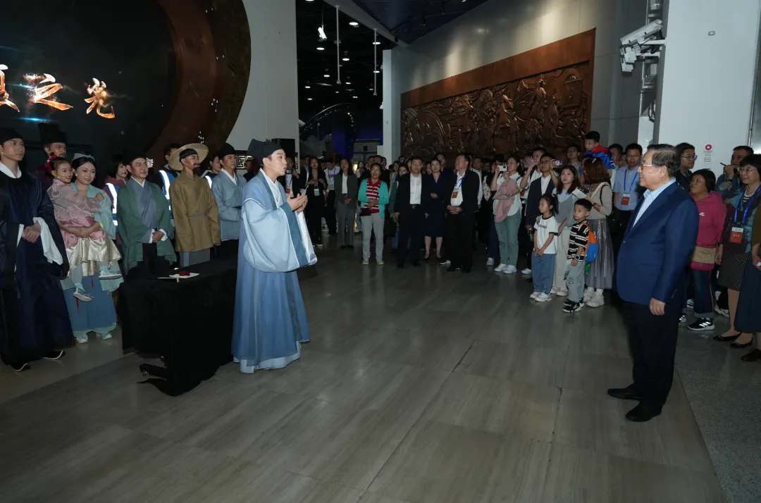 活动现场,中国科学技术协会万钢主席饶有兴趣地推动一辆满载中华优秀传统文化的小车,带领观众走入华夏之光殿堂,正式拉开了科学文化跨时空交流的大幕。