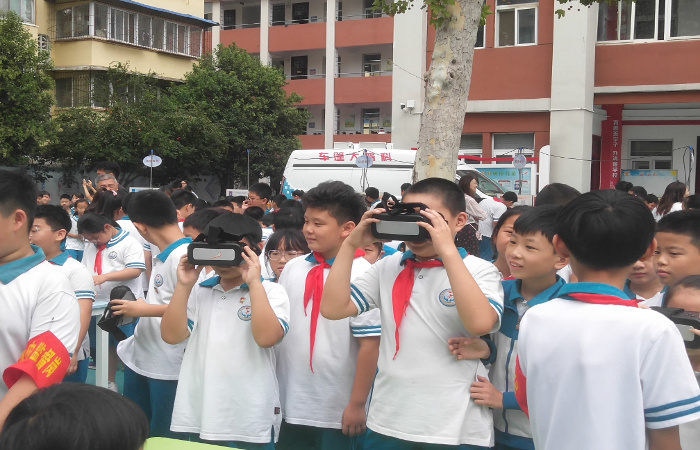 河南省新乡市科协科普大篷车走进卫滨区姜庄街小学,开展以“提升全民科学素质.协力建设科技强国”为主题的科普大篷车联合行动。此次活动以科普展品、VR体验和科学秀等项目为主,通过丰富多彩的互动体验,向青少年普及科学知识,展示科技成果,激发他们对科学的兴趣与热爱。同学们认真观摩,争相动手体验科技带来的乐趣,近距离感受科技魅力。