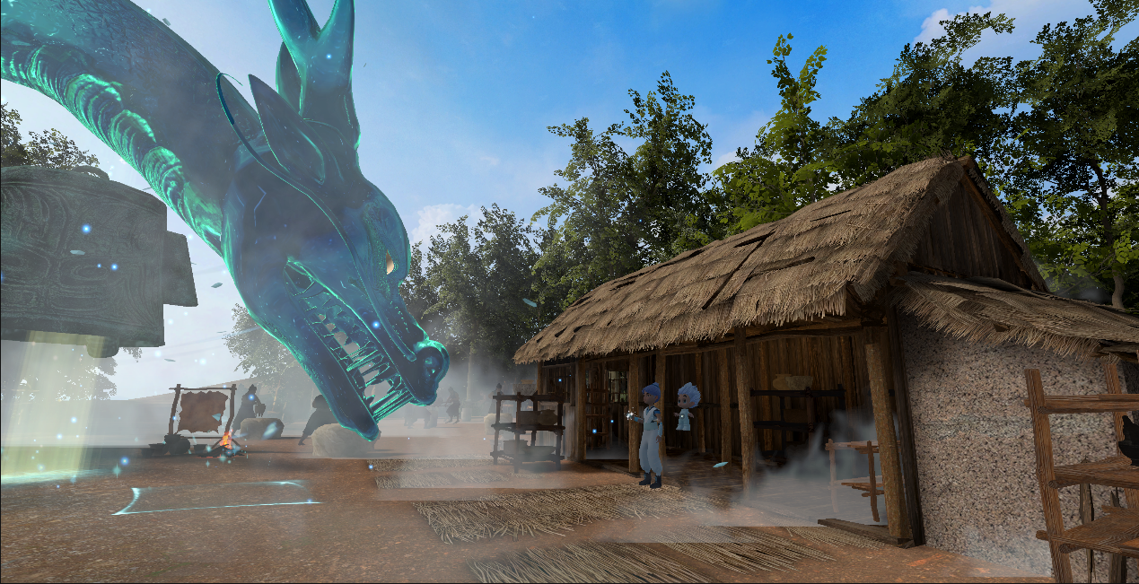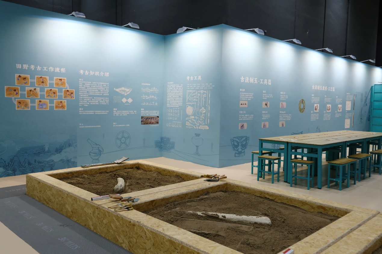 《何以文明》VR沉浸探索展区以习近平总书记关于中华优秀传统文化创造性转化和创新性发展的系列新思想新论断为指导思想,以中华文明探源工程成果为主要依据,围绕中华文明寻根主题,不断探索多元一体的中华文明起源进程,展示内容分为“圣玉之魂”“天象之力”“华夏主脉”“古蜀之光”“中华之言”五个单元,周游神州大地五处文明圣地,良渚水乡泽国的风姿、陶寺古观象台的星移斗转、二里头宫城的巍峨庄严、三星堆青铜神树的恢宏雄奇、殷商甲骨上刻的“最早汉字”,汇成一幅绚烂的历史图卷,在观众眼前徐徐展开。展区不仅用一个个生动的单元小故事,将不同文明遗址串联起来,更让观众打破“第四面墙”,走进历史传奇之中,感受中华历史文明的浩瀚博大。
