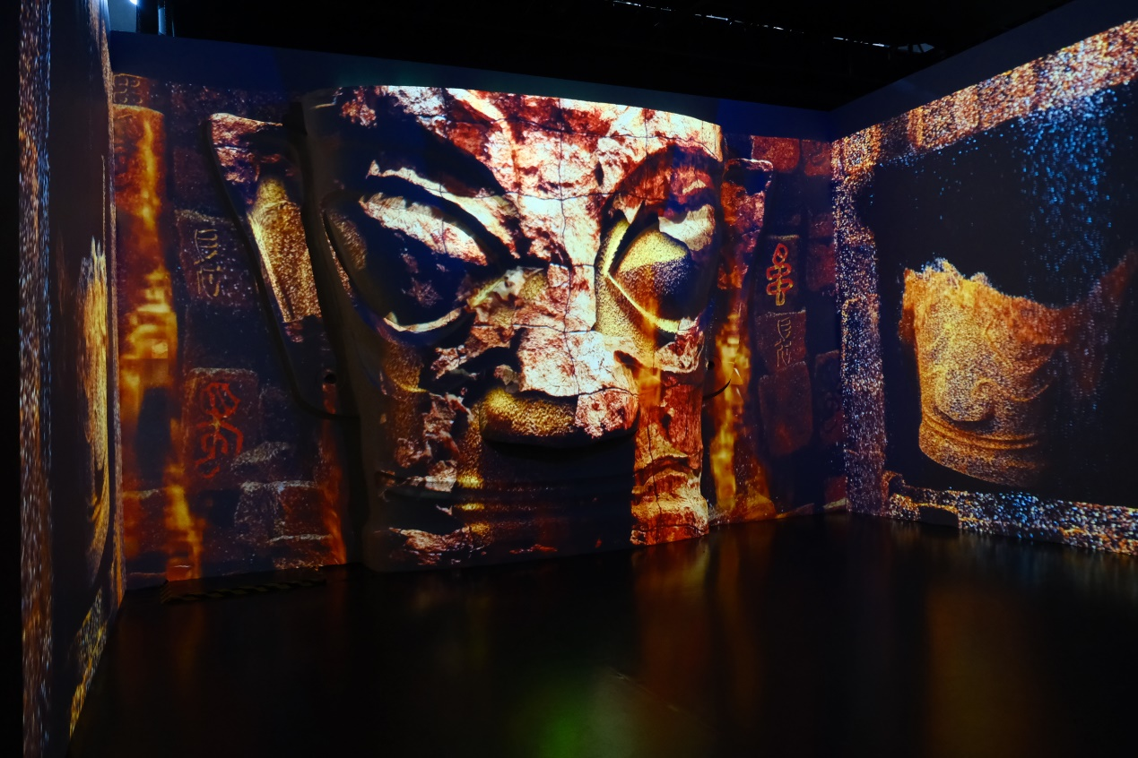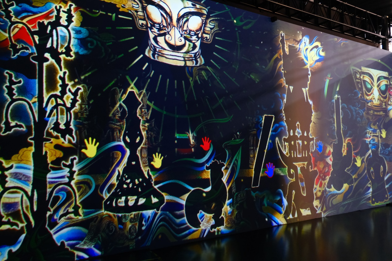 沉浸式数字艺术空间展区运用现代数字科技,以光影、色彩与音乐唤醒历史传奇,探寻先民的遗迹,叩问文明的未知。引领观众朋友们以全新方式纵览天地,溯游时空,感受一场世界青铜文明史上的奇迹。