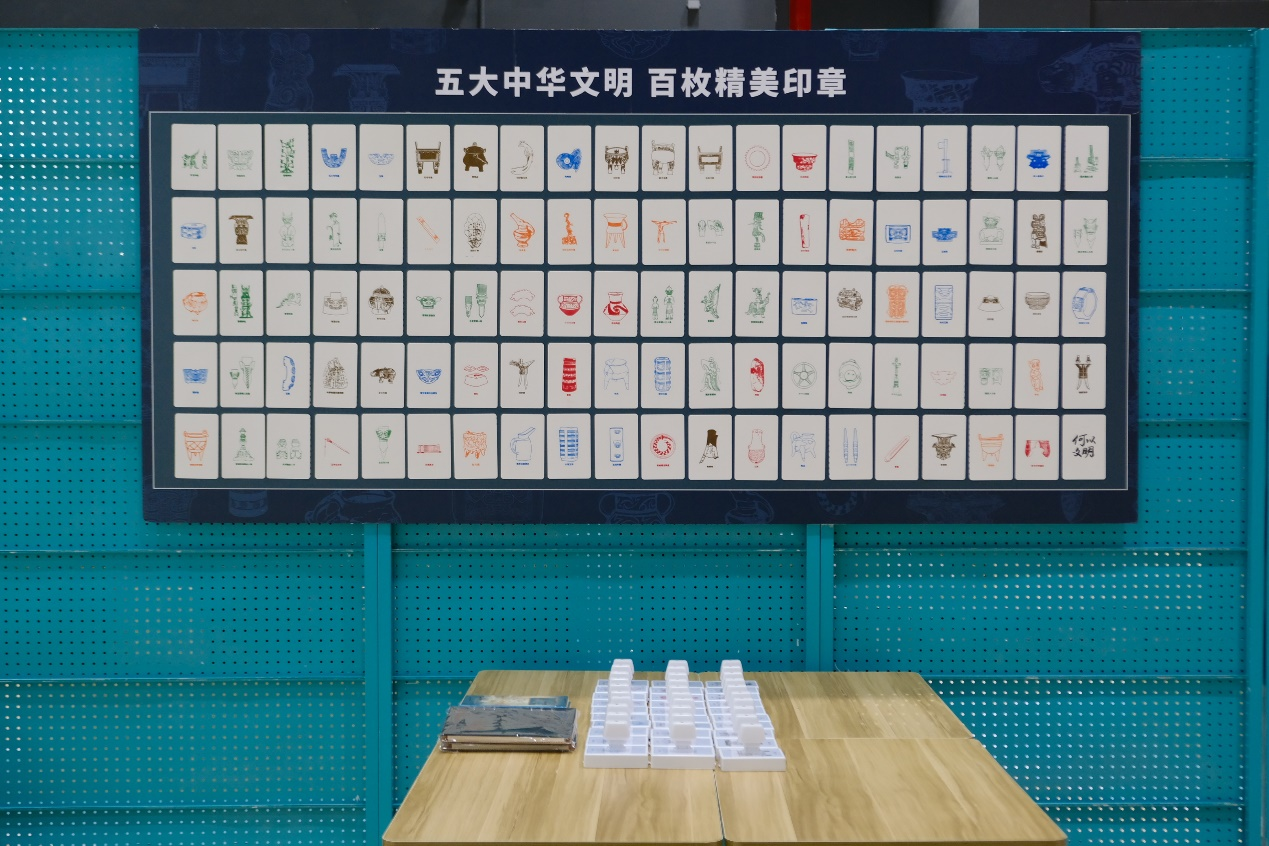 在展览现场的数字体验区,陈设着不同类型的现代科技设备,通过AIGC等先进科技,为观众构建了另一种别开生面的历史体验之旅;在研学互动区,观众朋友将在专业讲师指导下,身临其境体验三星堆祭祀坑考古发掘、青铜铸造、玉器雕刻等模拟场景,感受中华先民非凡的想象力和艺术创造力;在文创区,琳琅满目的文创衍生品,涵盖家庭、学校、职场、休闲等多重情景,汇聚多种国潮文化与潮流时尚融合的萌物。更有打卡集章区,一本薄薄的小册子,汇聚“满天星斗”般的中华文明符号,是一本意义非凡的时空旅行纪念册。精彩的互动展区吸引了许多观众朋友,他们或体验祭祀坑发掘,或尝试智能绘画,或倾听导师讲解……多样的互动方式,为大家带来了耳目一新的沉浸式体验。