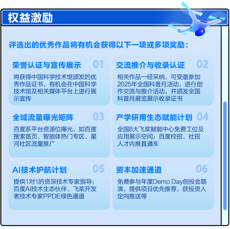 如果你的项目足够优秀,还有机会获得一系列重磅支持:专家推荐、平台优先展示、全域流量曝光、产学研用资源扶持、AI技术加持,甚至还有价值转化加速通道,助推你的优质成果华丽转身,影响力飙升!