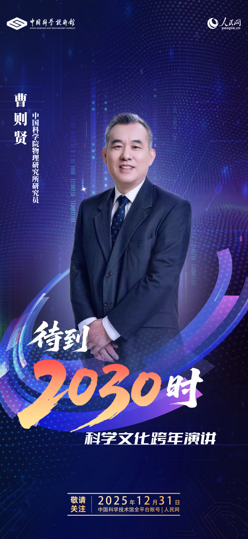 站在“十五五”规划的开局之年,我们如何锚定2030,构筑面向未来的认知图景?2025年12月31日,由中国科学技术馆与人民网联合推出的《待到2030时》科学文化跨年演讲,将围绕 “教育新思、产业新兴、未来智启” 三大篇章,展开一场前所未有的跨界思想对谈。