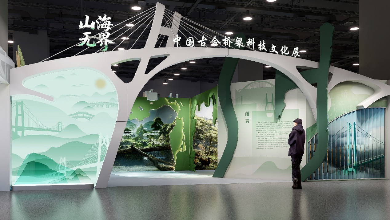 展览以“跨越·联通”为主题,分为“飞津济渡——跨越山河阻隔,联通民生之路”“勇立潮头——跨越国运艰难,联通报国之路”“万桥飞架——跨越科技鸿沟,联通强国之路”“古今一脉——跨越历史长河,联通文化之路”四大展区,系统呈现中国桥梁从古代到近代、再到现代的发展脉络与辉煌成就,深度诠释一脉相承的桥梁科技文化。通过桥梁这一独特载体,全景式铺展中国人用智慧与汗水所构建的“山海无界”的科技与文化图景,传递其中蕴藏的家国理想,揭示中华文明在不同历史维度中所实现的跨越与联通。