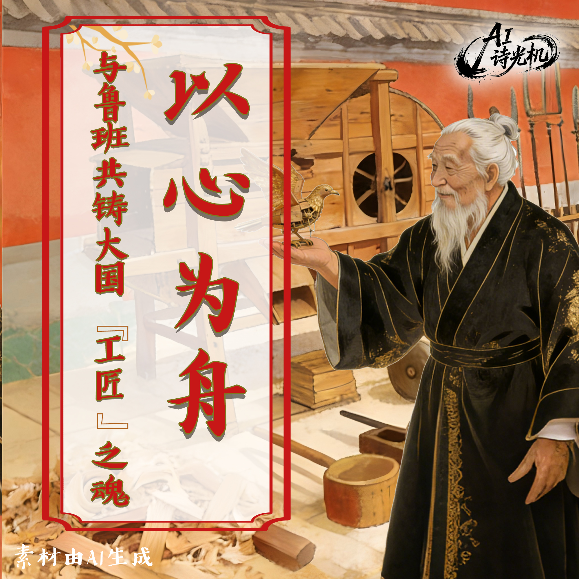 在铺陈的木匠工具之前,鲁班“走出”,凝视木纹,道出那句穿越千年的真理:“工欲善其事,必先利其器。”
