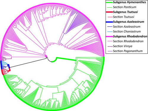 该研究成果最近以DNA barcoding of Rhododendron (Ericaceae), the largest Chinese plant genus in biodiversity hotspots of the Himalaya–Hengduan Mountains 为题发表于 Molecular Ecology Resource 上,该研究得到中国科学院大科学装置(2009-LSFGBOWS-01)、中国科学院重点部署项目(KJZD-EW-L07, KSCX2-EW-Z-2, KSCX2-EW-Q-10)以及科技部基础性工作专项(2012FY110800)的资助。(昆明植物研究所)