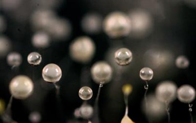 图为一群酵母细胞。一个细胞凋亡时,其余细胞便会解散。