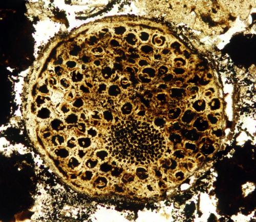 图为一6000万年前的多细胞生物化石,其复杂程度令人惊奇。