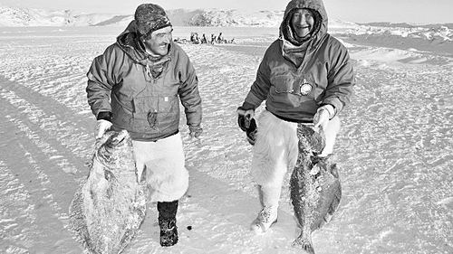 格陵兰岛的因纽特人拥有艰苦的生活——冬季的气温低至零下20摄氏度,并且通常面临食物匮乏的局面。因纽特人大部分的传统食物由鱼和海洋哺乳动物构成,具有非常高的脂肪含量。