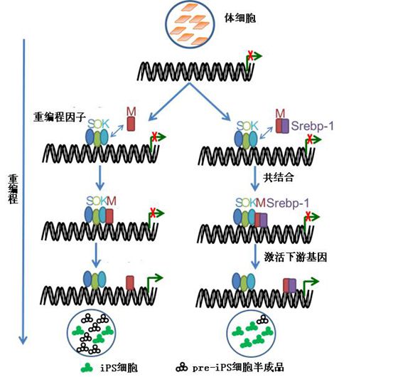 Srebp-1结合c-Myc促进体细胞重编程模式图