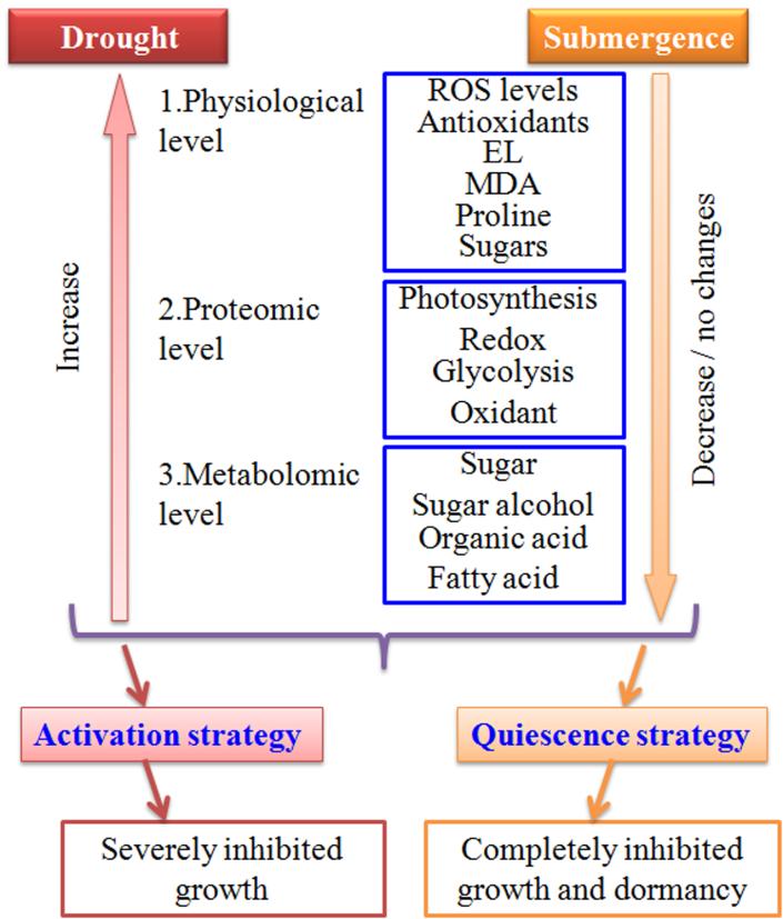 狗牙根具有较强的抗旱耐涝特性,是消落区生态恢复的理想植物。水分胁迫课题组博士生叶甜甜在研究员产祝龙的指导下,从生理生化以及蛋白质组学水平上解析了狗牙根对干旱和水淹胁迫的不同应答机制。研究表明,干旱胁迫促进了狗牙根体内多种生理生化代谢,多种生物学过程受到干旱胁迫的诱导。相反,水淹胁迫条件下狗牙根的多种代谢处于停滞和休眠状态。从而解析了狗牙根应答干旱和水淹两种胁迫的不同机制。相关结果发表在Frontiers in Plant Science上(doi: 10.3389/fpls.2015.00951)。