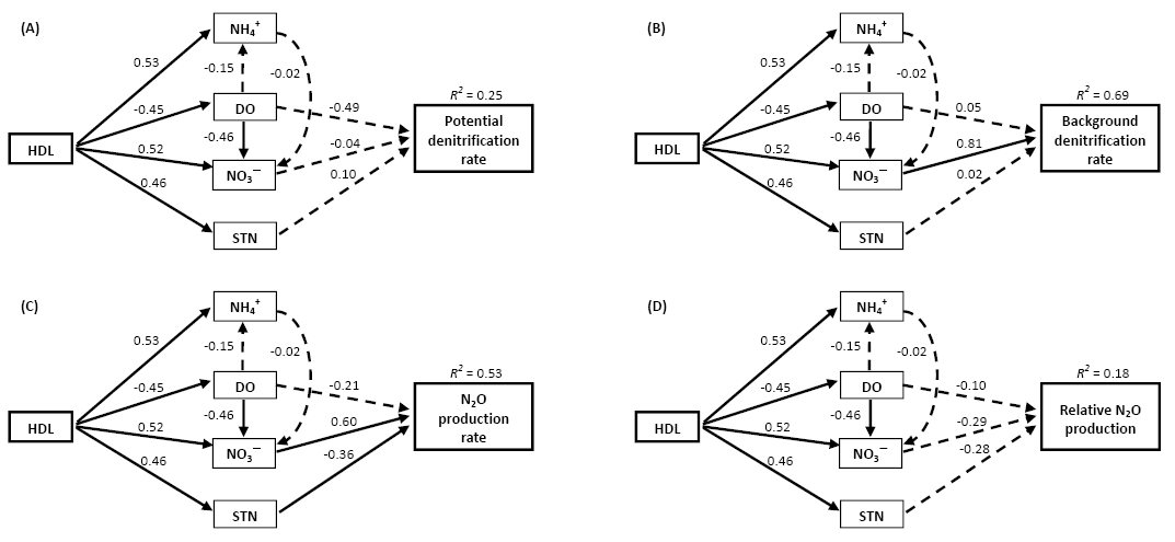 流域人类活动(HDL)影响湖泊底泥反硝化和N2O产量的路径分析