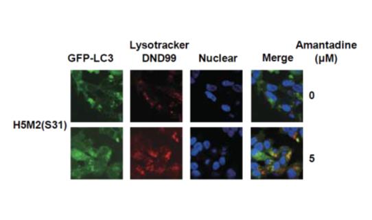 细胞自噬是真核细胞中高度保守的通过降解细胞中的细胞器、长寿命蛋白来维持细胞稳态的重要生理过程。在病毒、细菌等微生物感染时,细胞自噬可通过降解病毒成分等抵御微生物感染,是机体对感染的重要防御机制。在流感病毒感染宿主细胞时,细胞自噬参与流感病毒诱导的炎症反应,特别是参与高致病性禽流感病毒诱导的过度炎症反应。研究人员通过深入研究发现,M2蛋白通过其离子通道活性阻断细胞自噬体与溶酶体的融合而抑制细胞自噬的降解,同时证实M2蛋白阻断自噬不依赖Beclin1/PI3 Kinase复合物信号途径。此项研究对进一步阐明流感病毒对细胞自噬的作用机制及进一步探索细胞自噬在流感病毒感染过程中介导炎症反应及肺损伤的机制提供了重要线索,并为研究通过干预减轻高致病性禽流感病毒感染引起的过度炎症反应及肺损伤的策略提供重要依据。