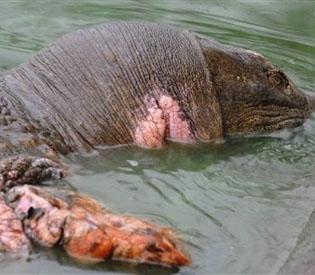 一名生物学家指出,巨龟的伤痕主要是被湖中垃圾里较为锋利的东西划破的,另外越来越差的水质也使巨龟的生存环境日益恶化。