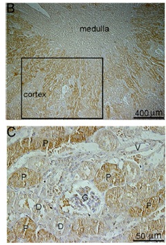 图1 NQO1主要分布在肾皮质近曲小管细胞内