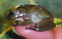 原来这种树栖的两栖动物会从它们的脚垫中分泌黏液,从而恢复每一步的黏性。参加在英国格拉斯哥市召开的实验生物学协会年会的生物学家发现,怀氏树蛙(Litoria caerulea,如上图)在爬树时能够进行自我清理,这是因为它们的脚上生有特殊的沟槽,能够排走污垢和碎渣。当树蛙向前运动它的四肢时,黏液和其他污秽物便会经由沟槽向后流动,与此同时,新的黏液又会在这里被分泌出来。
