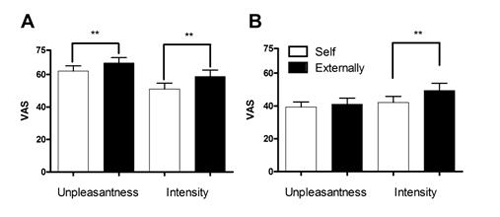 这一发现表明,主动运动时,由运动产生的疼痛会受到抑制,因此与接受外来刺激相比,自我施加的疼痛会因为中枢的抑制效应而明显减弱。主动运动抑制感觉通道的原因至今尚不清楚。一种可能性是神经系统的反馈抑制,即中枢在发出运动指令的同时反馈信息给感觉系统,以防止自身运动造成感觉系统脱敏感化。另一种可能性是,相对于接受刺激的不确定性,主动运动时个体能准确预期刺激的时间和强度,这种确定预期对于疼痛具有抑制作用。另外,自主控制感对于疼痛也有一定的影响。自我控制感强的人对疼痛的耐受能力高于一般人。