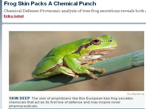 美国化学学会以Frog Skin Packs A Chemical Punch -Chemical Defense: Proteomic analysis of tree frog secretions reveals both salves and weapons akin to snake venom为题,对该成果作了专门评述。