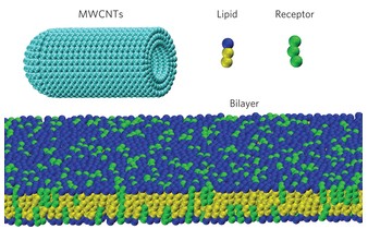 “我们原以为纳米管会贴附细胞膜以得到更多结合位点,但模拟却显示,纳米管稳定地旋转到近垂直角度以适于进入,以便其尖端被完全包围。这和人们的直觉相反。”论文第一作者史兴华(音译)说,细胞膜包住纳米管时,会释放弯曲能量。“如果纳米管的圆形尖端被切掉,开口而且中空,它就只会贴在细胞膜上而不会进入细胞。”