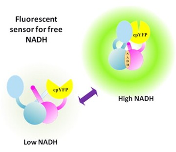 还原型烟酰胺腺嘌呤二核苷酸(NADH)及其氧化型(NAD+),是生物体内最重要的辅酶,广泛参与了细胞内的物质、能量代谢,信号转导与基因调控,与癌症、心血管疾病、糖尿病、神经退行性疾病等许多人类重要疾病关系密切。长期以来,细胞内的物质、能量代谢,信号转导与基因调控虽然是人体的重要指标,但是很难检测到细胞代谢的全过程,杨弋教授课题组利用合成生物学方法,开发了一系列的检测NADH的遗传编码荧光探针,在国际上首次实现了对活细胞及各种亚细胞结构中对NADH分子的实时动态、特异性的检测与成像。鉴于NADH在代谢和信号转导中的中心作用及其在疾病诊疗中的重要性,新研究为研究者提供用生物成像技术观察组织与细胞内NADH的分布、细胞的运行情况、细胞的代谢情况的创新工具与手段,同时可以对细胞的代谢情况进行高时空分辨率的探测、录像和拍照,还可以定位或定向任何一个地方和部位进行检测,对推动人们更好地了解细胞内物质与能量代谢的调节机制具有十分重要的意义。