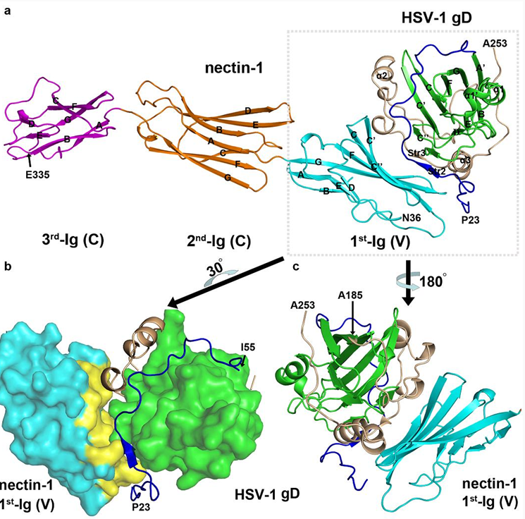 单纯疱疹病毒I型gD蛋白与受体nectin-1的复合体结构