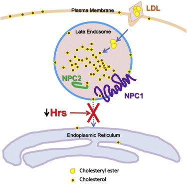 Yang教授领导的研究小组发现一种已知为Hrs的蛋白在指导低密度脂蛋白如何沉积以及在哪儿沉积发挥着特异性的作用。研究人员在实验室中证实降低Hrs水平导致胆固醇在胞内体(endosome)---一种通常包含很少胆固醇的细胞区室---中积累。