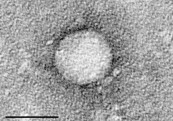从细胞培养物中纯化出来的HCV病毒的电子显微镜图片,图片来自维基共享资源。