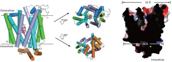 葡萄糖转运蛋白GLUT1-4在大肠杆菌中的同源蛋白XylE的晶体结构