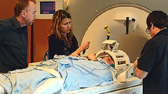39岁的斯科特-鲁特雷在功能核磁共振设备中进行大脑活动扫描时能够与研究人员进行交流