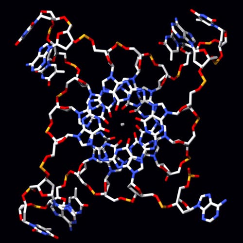 诺贝尔奖得主、英国剑桥大学的沃森(Watson)和克里克(Crick)在1953年发现了DNA分子的双螺旋结构,此结构因包含生命遗传密码(即存储生物信息)而著称。DNA代表脱氧核糖核酸,其为所有生物体的遗传指令编码,它由四个称为核苷酸的基本单元组成,这四个基本的DNA核苷酸是腺嘌呤、鸟嘌呤、胞嘧啶和胸腺嘧啶。2013年是沃森和克里克发现DNA结构60周年,有趣的是,剑桥大学的一个研究小组最新的研究证明,人类基因组中存在四链螺旋的DNA结构。此项研究的负责人、剑桥大学化学系的尚卡尔(Shankar Balasubramanian)教授说:“我们的研究表明,四螺旋的DNA结构更可能存在于迅速分裂的细胞基因中,如癌细胞。科学家有望开发出以这种异常DNA结构为靶点的癌症新疗法。”