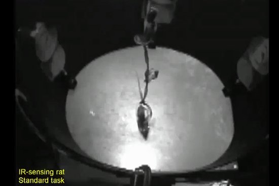 尼科莱利斯称之为“扩展人体功能”,这让我们想起雷声公司设计的增加士兵力量的外骨骼。然而,尼科莱利斯声称他的兴趣在于健康领域而不是军事领域。尼科莱利斯和他的同事们为6只老鼠的大脑中植入了一个小型的红外探测器。这种传感器能够探测红外线,然后把光线转变成类似强度的电脉冲。传感器的电信号进入老鼠通常用于感觉胡须触觉的大脑部分。