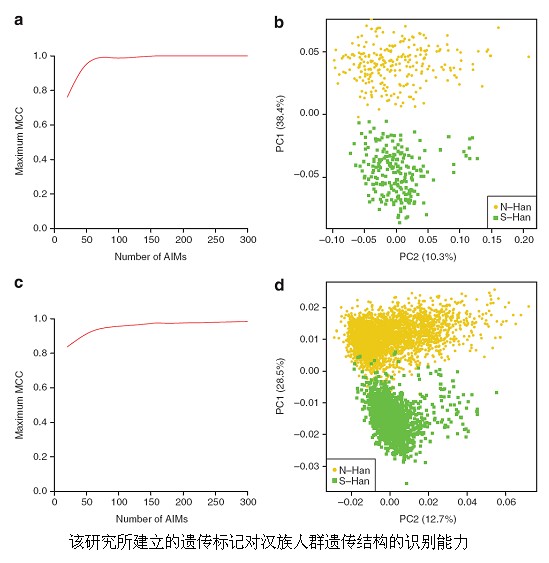 该项研究通过在5500例汉族个体的全基因组数据中筛选,建立起可以高度识别汉族人群遗传结构的DNA标记,并进一步通过实验数据和计算机仿真评估了这套标记的效能。研究成果对今后在汉族人群中从事关联分析的研究具有实际应用价值。通过这套标记,直接依据DNA信息对遗传结构进行识别、对样本进行客观分类和筛选,是关联分析合理实验设计的前提,也是保证关联分析结果可靠性的必要条件。