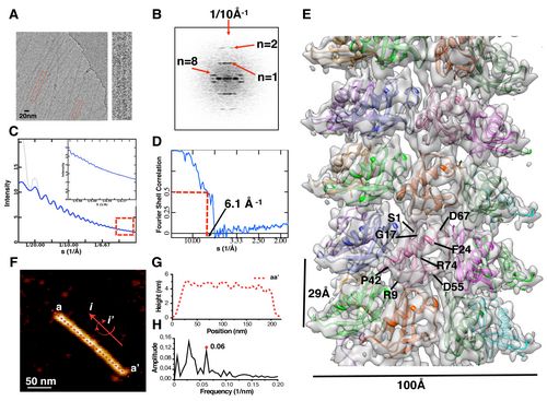图二:显示通过低温电镜三维重构技术和原子力显微技术获得Par-3的N端结构域螺旋组装体的高分辨率结构。