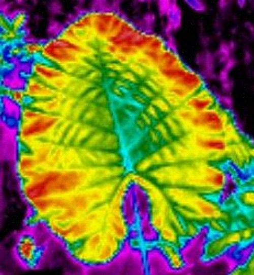 研究表明,由于叶片边缘部位导水功能和气体交换功能减低,加之大叶的水汽边界层较厚,叶片边缘散热受到抑制.露天生长的植株晴天下午叶片边缘附近比叶片中部温度高8.8 ºC,导致一些叶片边缘出现高温灼伤而“干枯”现象。
