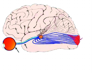我们之所以能看见东西,是因为眼睛将光信息聚焦在视网膜上,视网膜将光学信息转变成神经电讯号,透过视神经传送到大脑视觉区域,使我们看清东西(图1)。