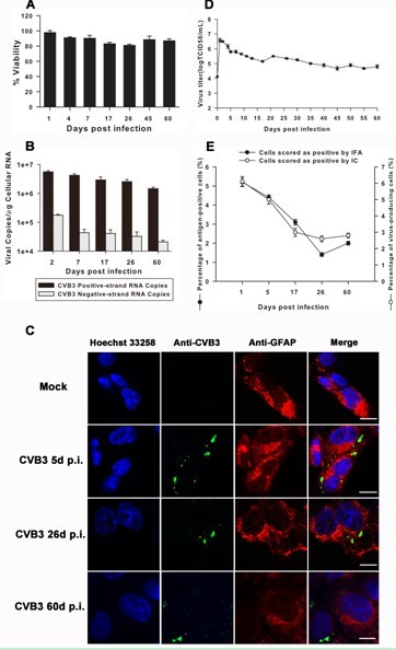 近期,中科院武汉病毒研究所王汉中课题组在柯萨奇病毒B3型(CVB3)持续性感染宿主细胞的研究中取得新进展。相关结果发表于国际病毒学杂志Journal of Virology上。