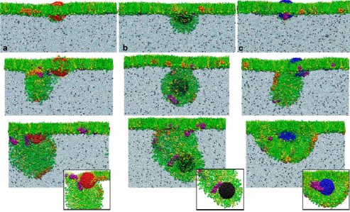中科院力学研究所非线性力学国家重点实验室研究员胡国庆、博士研究生焦豹、副研究员施兴华与美国夏威夷大学教授Zuo Yi课题组开展合作,结合分子动力学模拟和实验测量,深入研究了不同亲水性及表面电荷对纳米颗粒/天然肺表面活性剂单层膜相互作用的影响机理。研究表明,纳米颗粒与肺表面活性剂的相互作用及其脂蛋白冕的形成,不仅影响肺表面活性剂单层膜的生物物理特性,还将对随后的颗粒表面生物分子交换、与肺细胞的相互作用、颗粒进入不同组织和器官等过程产生影响。研究进一步建议,在评估纳米颗粒毒性以及设计以纳米颗粒为载体的吸入式给药方式时,应考虑纳米颗粒-肺表面活性剂脂蛋白复合体的特性。