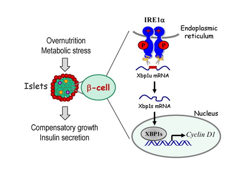 近日,《细胞研究》(Cell Research)杂志在线发表了中国科学院上海生命科学研究院营养科学研究所刘勇研究组的最新研究进展——The IRE1α-XBP1 pathway regulates metabolic stress-induced compensatory proliferation of pancreatic β-cells。此项工作揭示了在营养过剩与代谢应激状况下,内质网应激IRE1α信号通路在胰岛β细胞代偿性增殖过程中的重要调节作用。