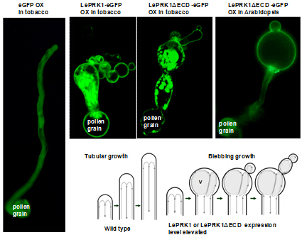 9月5日,中国科学院上海生命科学研究院植物生理生态研究所唐威华研究组在Plant Cell 杂志上在线发表题为Overexpression of the Tomato Pollen Receptor Kinase LePRK1 Rewires Pollen Tube Growth to a Blebbing Mode 的研究论文。该项研究发现,过表达番茄花粉受体激酶LePRK1后,花粉管从管状生长模式转变为泡状生长模式,这一转变是通过LePRK1的下游激酶伴侣蛋白KPP及其互作因子PLIM2a调控花粉管肌动蛋白骨架来实现的。