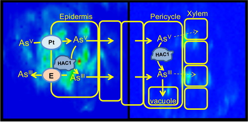 该项研究通过离子组的研究发现模式植物拟南芥叶片砷含量存在着巨大的自然变异,进而利用全基因组关联分析以及图位克隆鉴定了控制这一变异的重要功能基因HAC1(High Arsenic Content)。该研究发现HAC1可有效阻止植物体内砷的积累,而其突变则导致植物体内积累高达数百倍的砷。进一步的研究显示,该基因编码了一个全新的砷酸盐还原酶,并主要分布在根的外皮层及根毛细胞中。结合分子生物学、分析化学以及植物生理学等手段,该研究在前人的研究基础上进一步阐明了植物控制砷迁移积累的分子机制:砷酸盐在化学性质上与磷酸盐非常相似,因而植物很难区分两者,从而在吸收矿质营养磷酸盐的同时也将砷酸盐摄入体内。为了限制砷向地上部迁移而危害植物的生长代谢,在植物根部的外表皮和根毛中高度表达HAC1蛋白特异性地识别砷酸盐并将其催化形成与磷酸盐化学性质迥异的亚砷酸盐,而后者则通过一种未知外流蛋白的运输排出植物体外。该基因的发现在促进我们理解植物耐砷分子机制的同时,也为将来培育低砷甚至无砷农作物提供重要的操作靶标,具有重大的应用潜力。