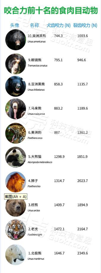 知乎网友提供的咬合力数据